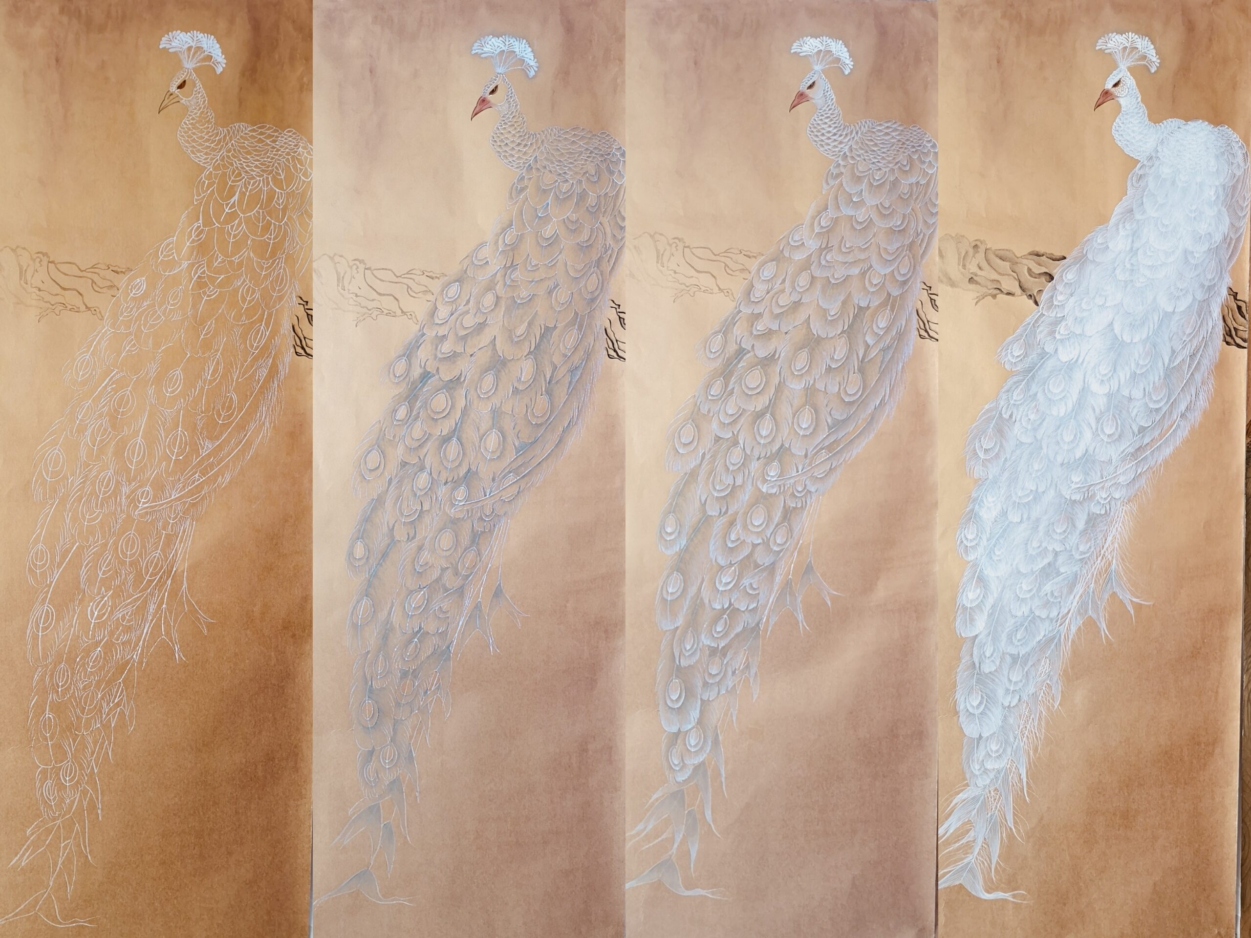 It has been a journey of nearly two years for Mrs. Yi Jiang to bring these masterpieces to life, each piece a testament to the dedication and passion we poured into every brushstroke. The intricate layers of color, the soul embedded in each movement, and the beauty of nature we sought to capture reflect our unwavering commitment to storytelling, the pursuit of rich historical understanding, and a profound respect for the natural world.