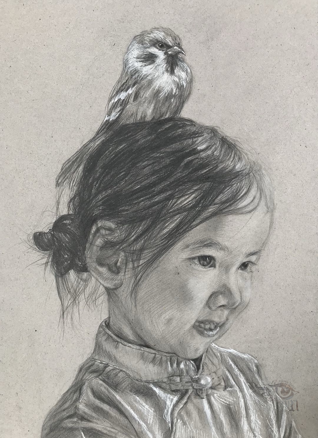From an early age, she demonstrated remarkable artistic talent and received training from Fengli Yu, founder of Yu-Phoenix Studio, a professional artist who graduated from Central Academy of Fine Arts (CAFA). This solid foundation allowed her to develop strong technical skills without detours, leading her to successfully enter one of the world’s top art institutions.